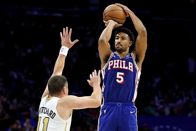 本場比賽中,76人的替補(bǔ)后場大將昆汀-格萊姆斯(Quentin Grimes)的表現(xiàn)還是相當(dāng)不錯的。格萊姆斯全場出場27分50秒,投籃10中6,三分線外6中3,罰球3中3,得到了18分6籃板4助攻1蓋帽的數(shù)據(jù),還有4次失誤和2次犯規(guī),正負(fù)值為0。格萊姆斯在本場比賽中依然是在攻防兩端起到了很好的效果,他在進(jìn)攻端展現(xiàn)出了相當(dāng)不錯的得分能力,他也具備穩(wěn)定的投射能力,他在進(jìn)攻端也是給對手制造了不小的威脅。不僅如此,格萊姆斯在傳球和組織方面也是起到了很好的效果的,他也是球隊第二陣容中的核心人物。格萊姆斯在防守端的表現(xiàn)也是相當(dāng)突出的,他也能夠在防守端起到很好的效果。格萊姆斯算是幫助球隊穩(wěn)住了局面,他也是為球隊的勝利做出了巨大的貢獻(xiàn)。